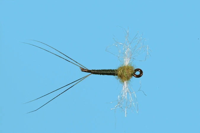 The Spinner Baetis imitates an adult common mayfly hatch in a dark olive color found in running waters. Spinners can mate in huge swarms by the shoreline. They mate mid-air and then about five days later, they return to the water to lay their eggs which hatch immediately. (The adults then die after serving their purpose.) This period serves as a good extended time to use spinners for fishing. Anglers can find more eggs hatching at low light and on calm days.