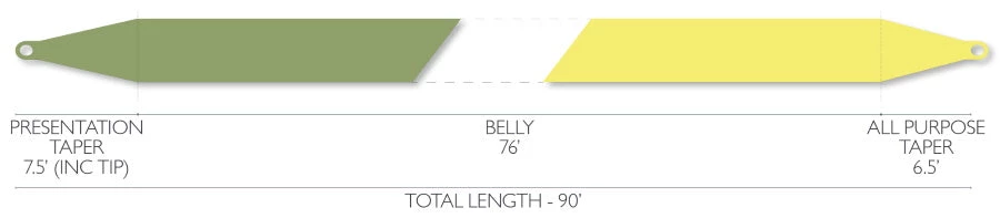 The Superflo Elite is available in double taper (2wt-5wt) designs. The double taper version features two different front taper designs for maximum versatility: The “darker” color end has an extended front taper for more delicate dry fly presentations; The “sunrise yellow” colored end is shorter and more moderate for an all-purpose option.