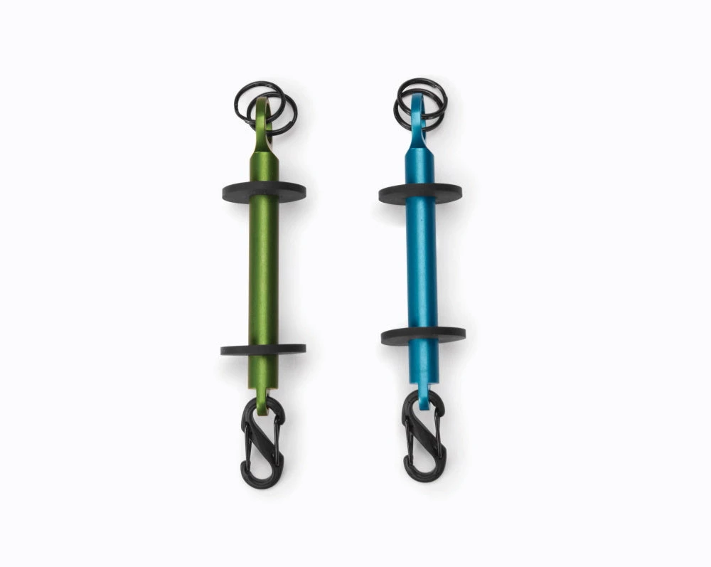 Finally…a way to organize and carry your tippet spools. Easy to use, this anodized machined aluminum tool is strong, lightweight and functional. Holds seven spools of tippet and has two methods of attachment: a carabiner clip and rings. In blue, pine.