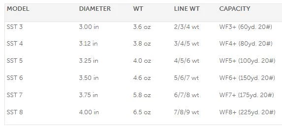 The new SST Series Fly Reel is tru to size. SST 4 is ideal for a 4wt line. However, each SST can be used with lines one size smaller or larger depending on the angler’s preference.